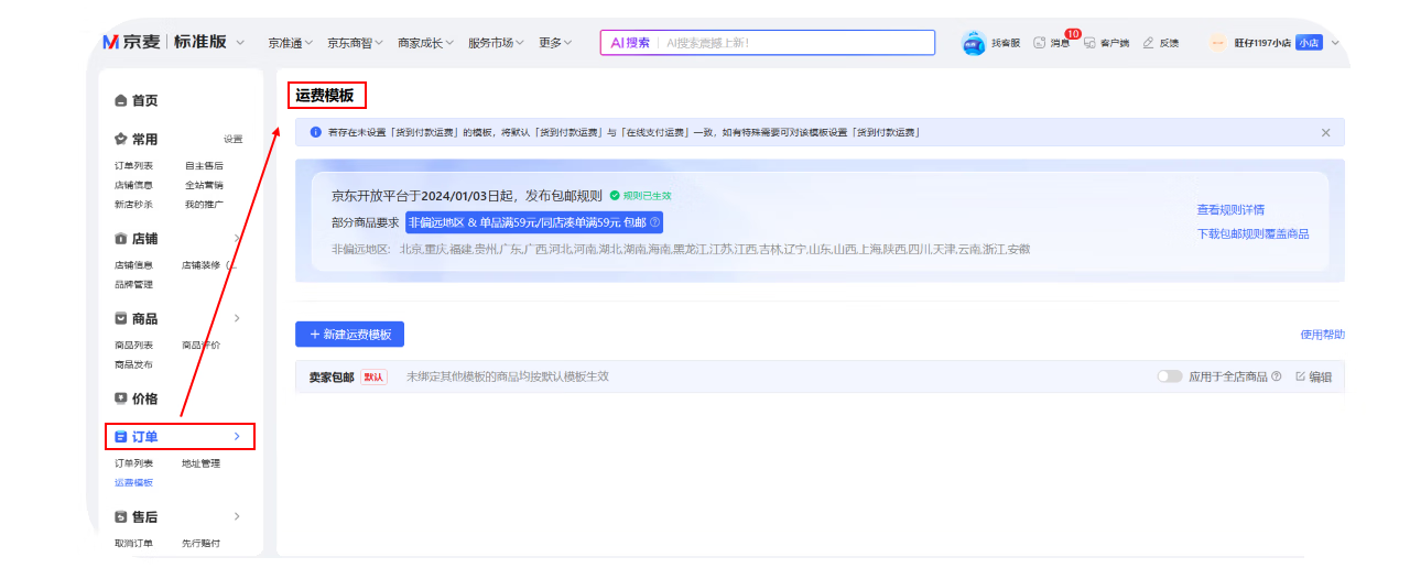 路径②:商家后台->交易->运费模板