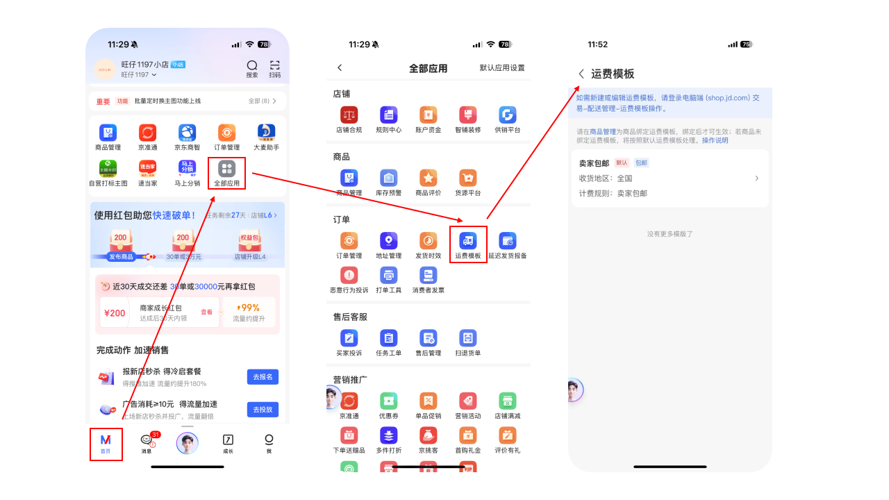 路径①:直达链接:https://shop.jd.com/jdm/legacy/delivery.shop.jd.com/freight/storeTemplateList
