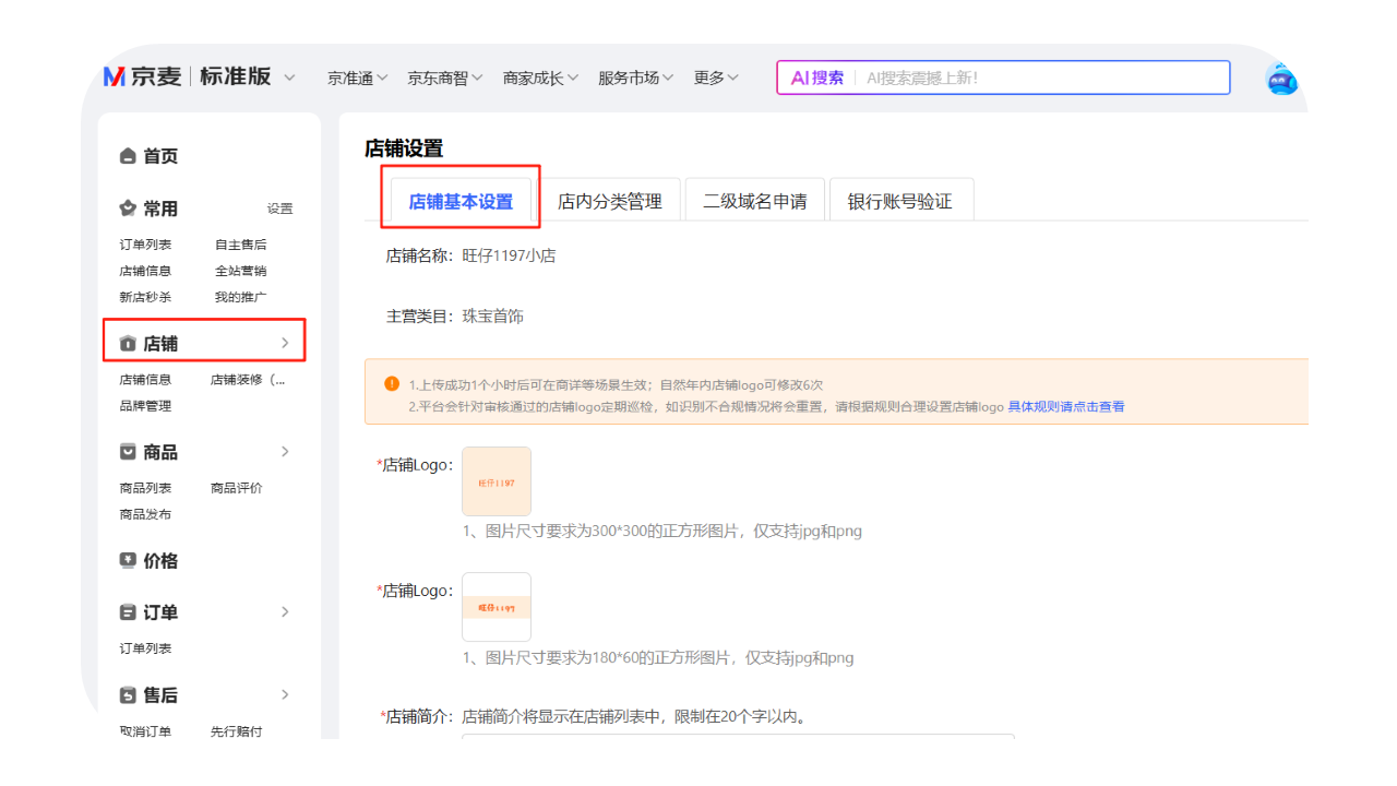 路径①:直达链接:https://shop.jd.com/jdm/seller/shop/settings